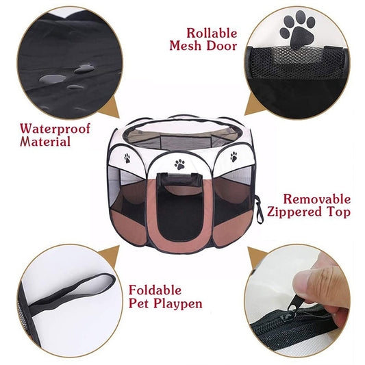 Pet Cage Portable Pet Tent Folding Dog House Cage Cat Tent Playpen Puppy Kennel Easy Operation Octagonal Fence Large Dogs House